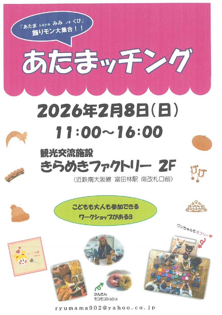 帽子あり、イヤリングあり、マフラーあり、 の頭に関連する飾りモンが集合した小さな手作り市です。 おいしいコーヒーとお菓子で休憩できるコーナーや お子様も参...