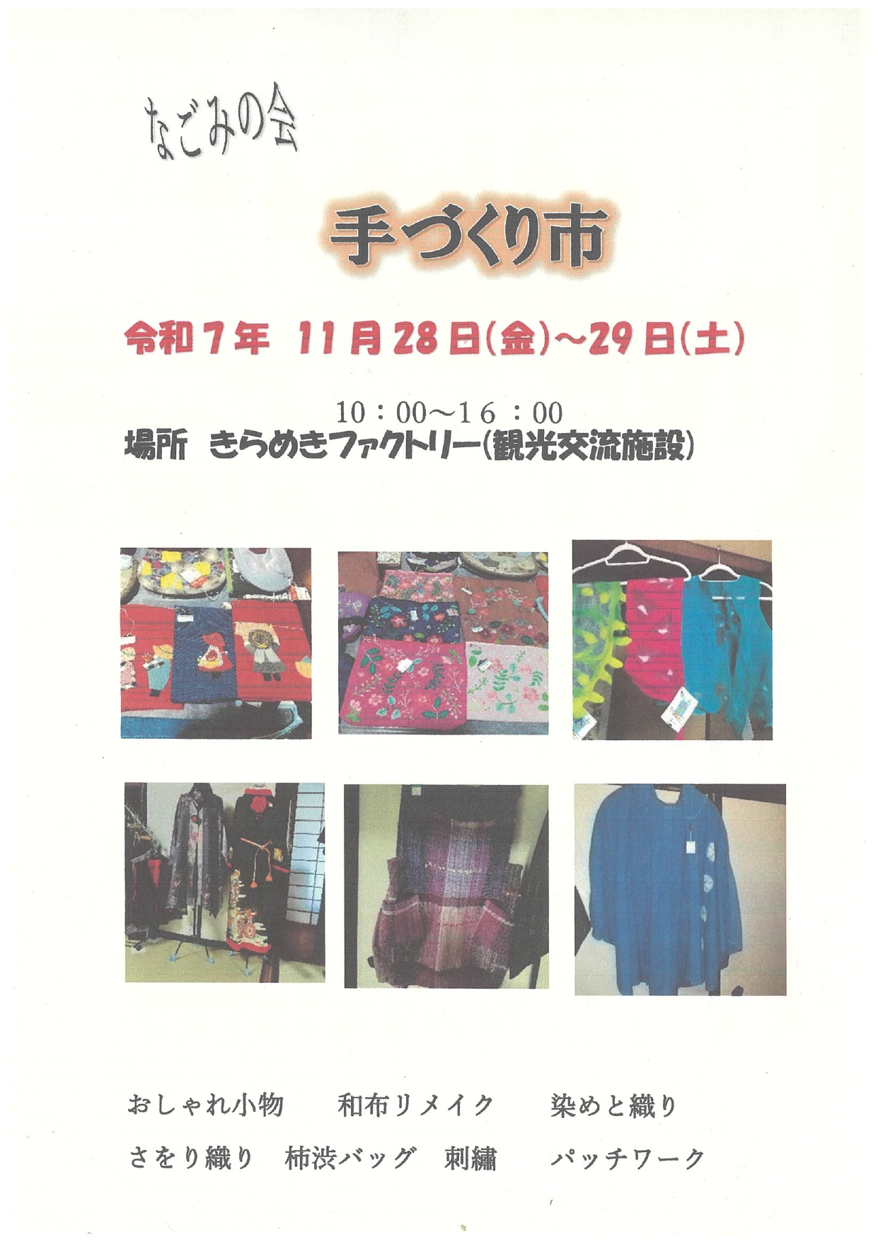 手作品 カバン・さをり織の服 ストール・ブローチ・フェルト小物 着物リメイク服 おしゃれ小物 染めと織 パッチワーク 主催 な...