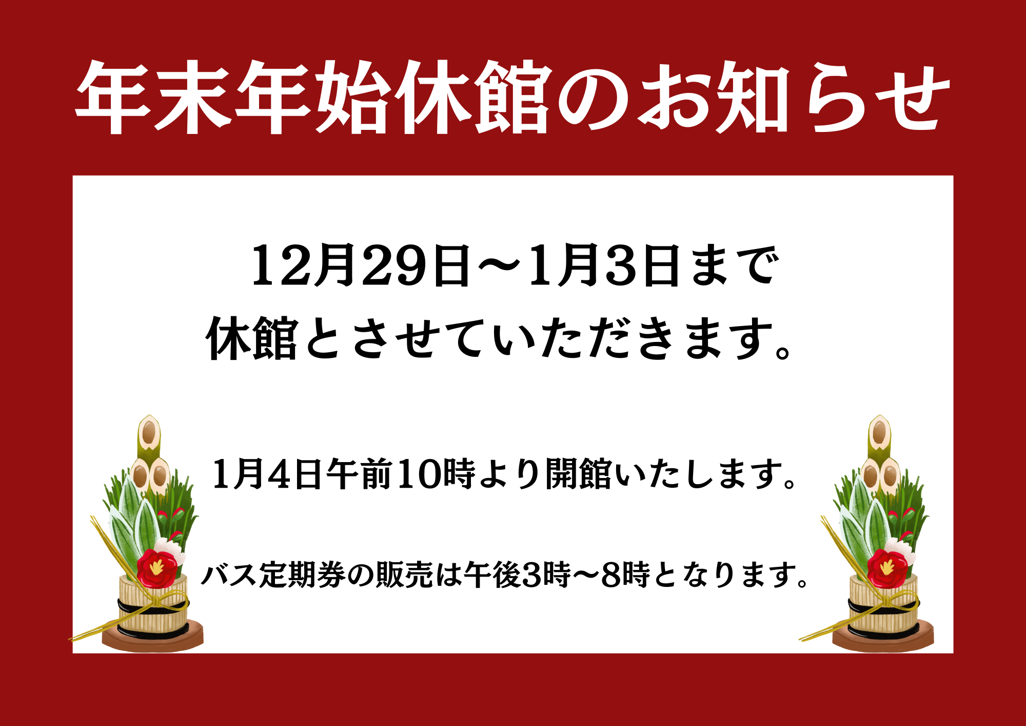 年末・年始のお知らせ