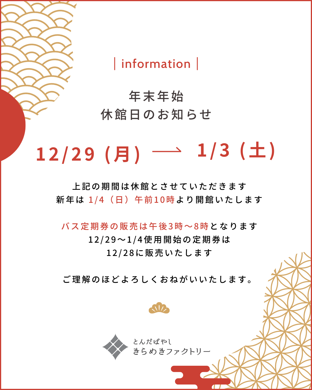 > 年末・年始のお知らせ